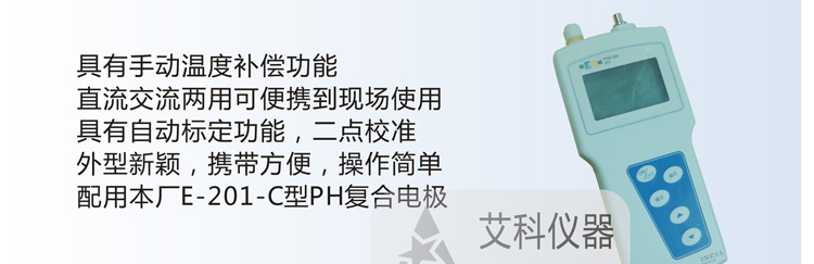 電位(mV)值,本儀器體積小,攜帶方便,特別適合于在無交流電源的地方作水溶液的酸度測(cè)定。